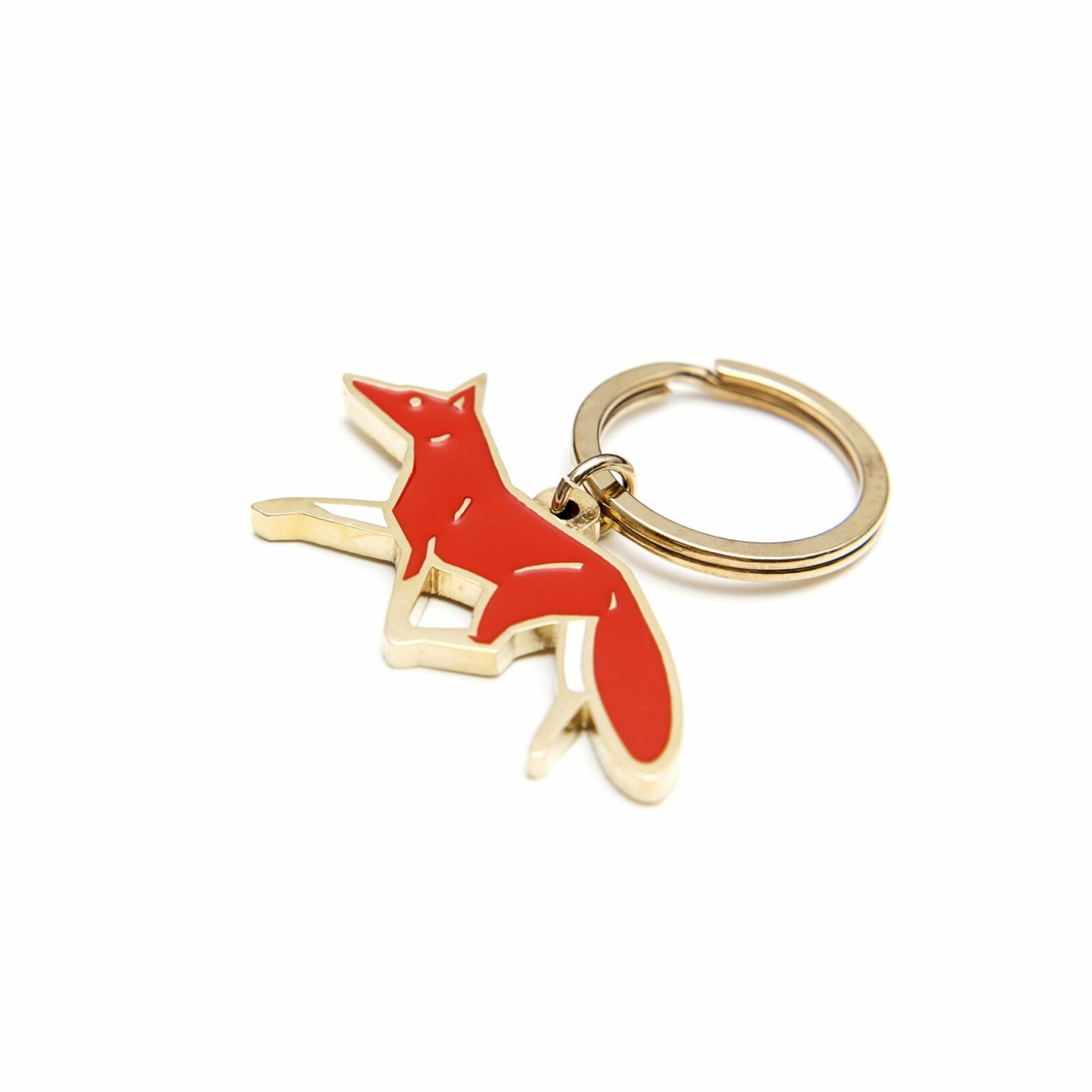 Ręcznie wykonany brelok z rudym lisem od Marceliny Jarnuszkiewicz. Pozłacany i emaliowany.
