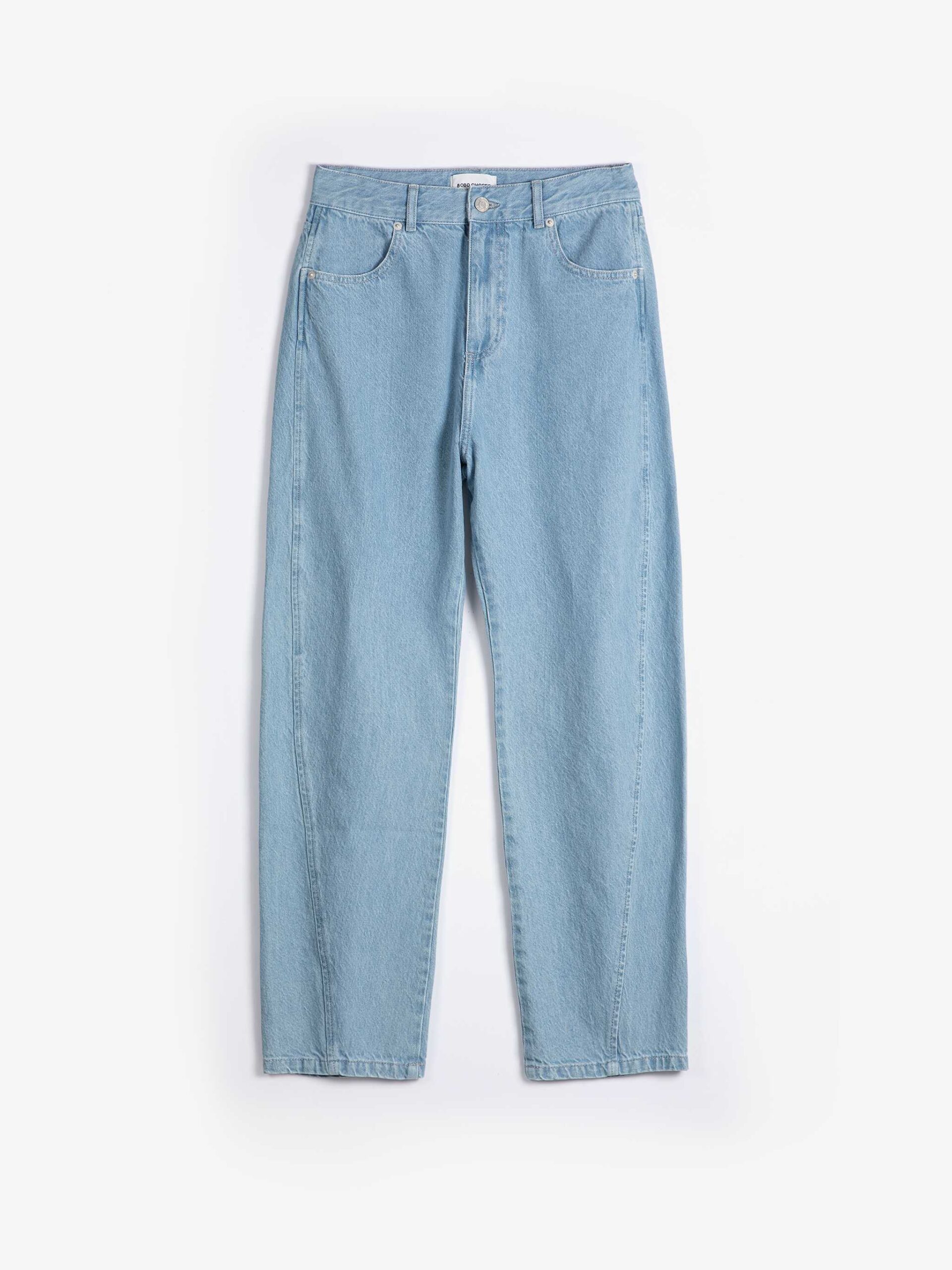 Wykonane z 100% organicznej bawełny, z jeansu o średniej gramaturze, są trwałe i przyjemne w noszeniu — idealne na co dzień. Jasny odcień nadaje im lekkości i sprawia, że łatwo dopasować je do różnych stylizacji.