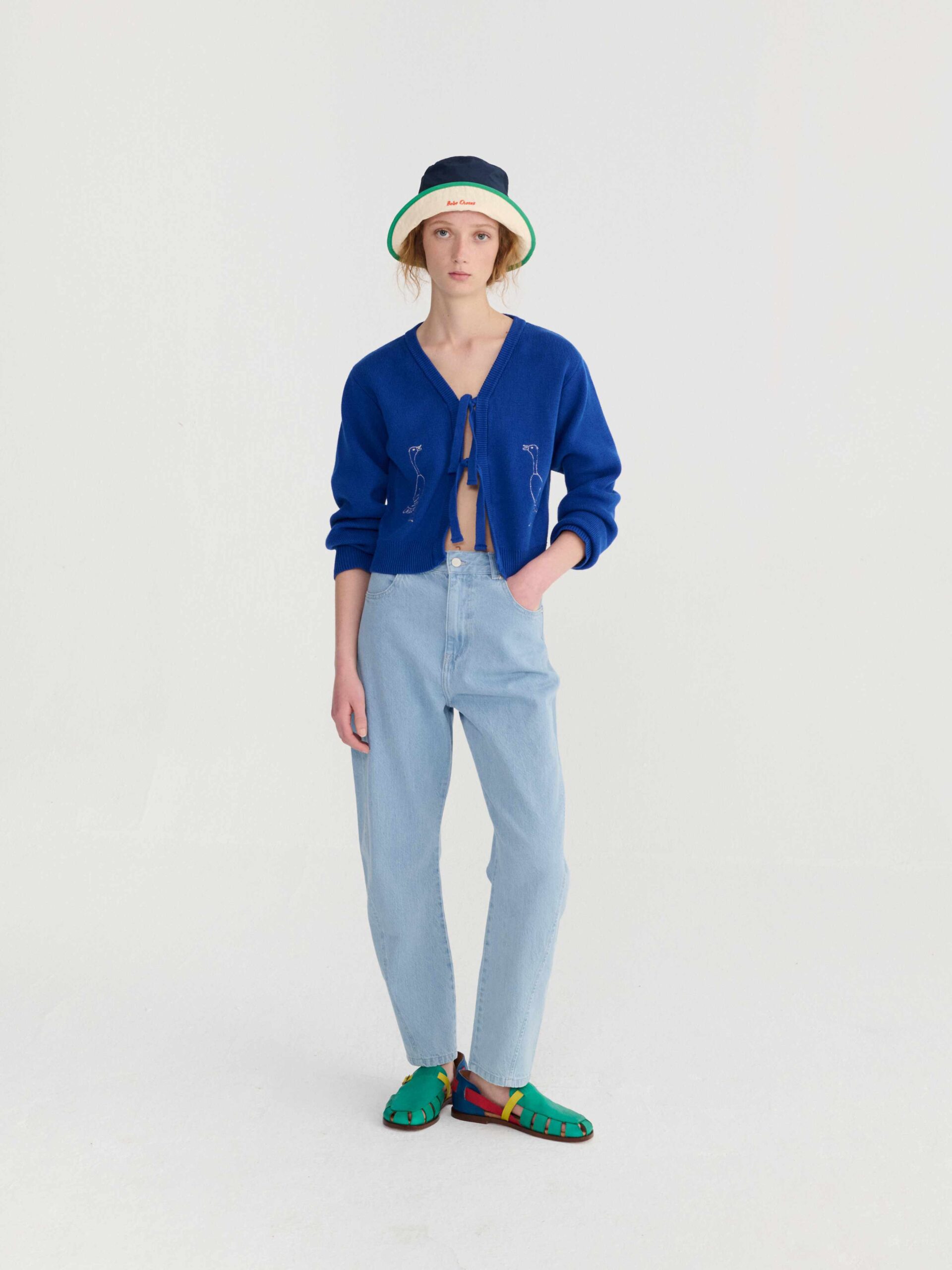 Klasyczne jeansy z wysokim stanem w charakterystycznym dla Bobo Choses, swobodnym wydaniu. Model Simple Pear wyróżnia się lekko zaokrągloną linią nogawki i komfortowym krojem, który łączy funkcjonalność z nowoczesną formą.