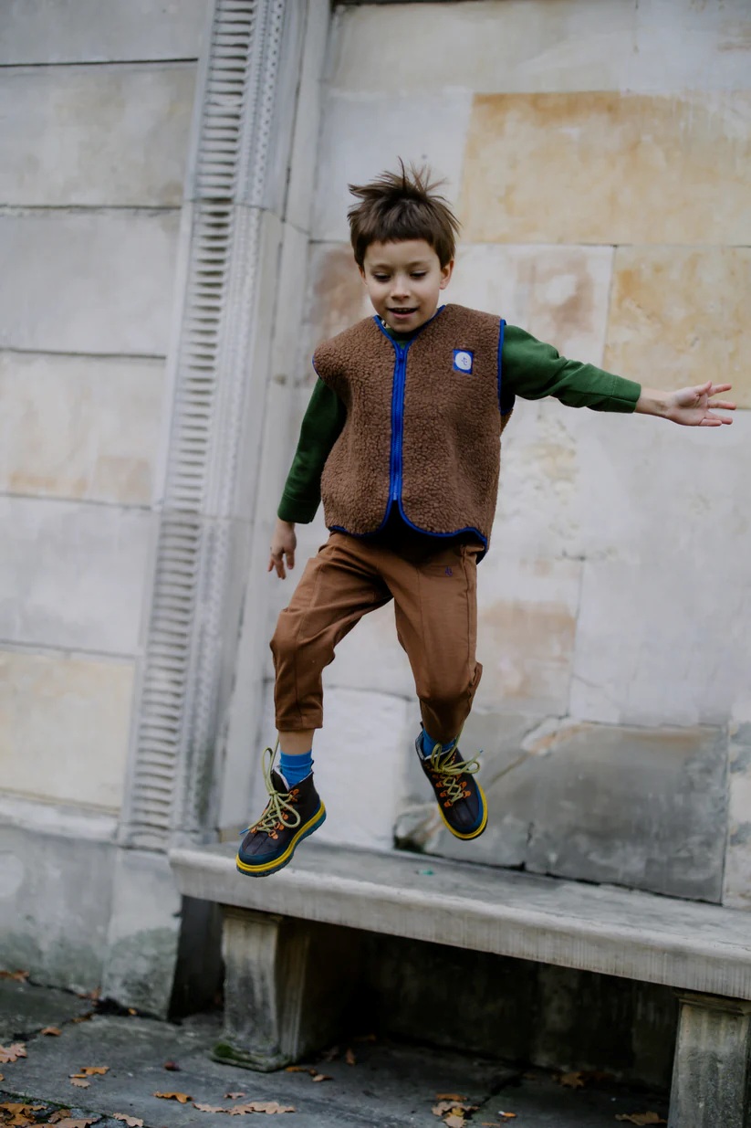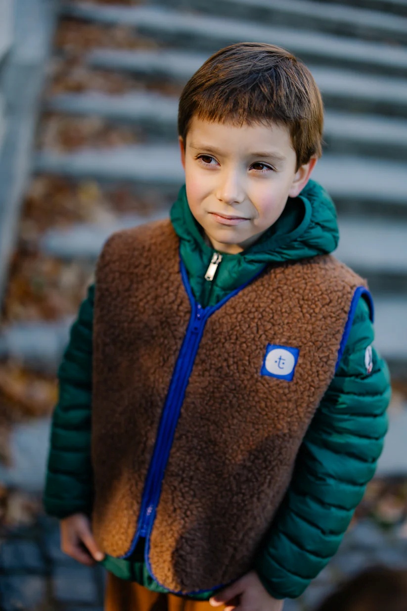 Kamizelka Hug Gang Kids to miękka i wygodna warstwa na chłodne dni – uszyta z puszystej dzianiny futerkowej z wełny merino (mulesing-free). Naturalna, oddychająca i przyjazna dla skóry dziecka – idealna do biegania po ogrodzie, na spacer czy pod kurtkę.