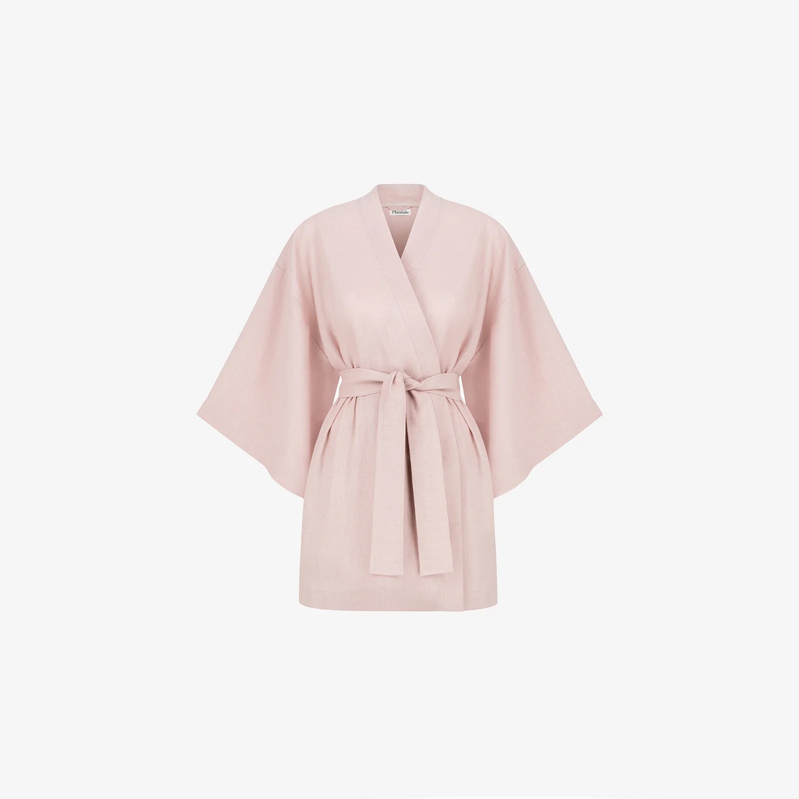 Krótki szlafrok z miękkiego lnu to połączenie komfortu, lekkości i ponadczasowego stylu. Inspirowane klasycznym kimono, otula ciało i daje pełną swobodę ruchu – idealne na poranki, wieczory, po kąpieli i jako domowa narzutka.
