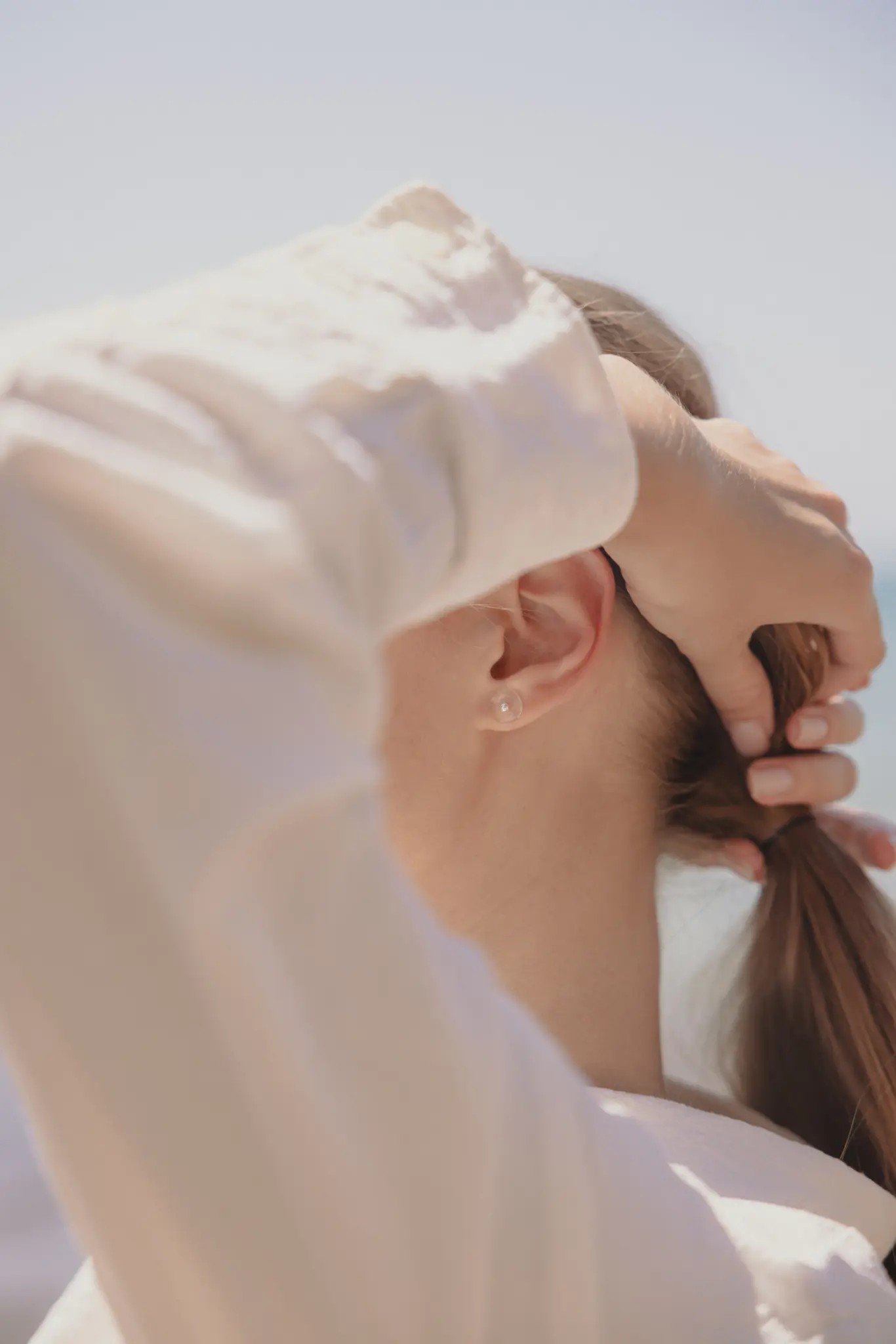 Subtelne, ręcznie wykonane kolczyki ze szkła i srebra, inspirowane naturą wody. Model Krąg z kolekcji AQUA autorstwa Magdaleny Paszkiewicz łączy lekkość szkła z prostotą srebrnych detali – niczym kropla wody zatrzymana w ruchu.