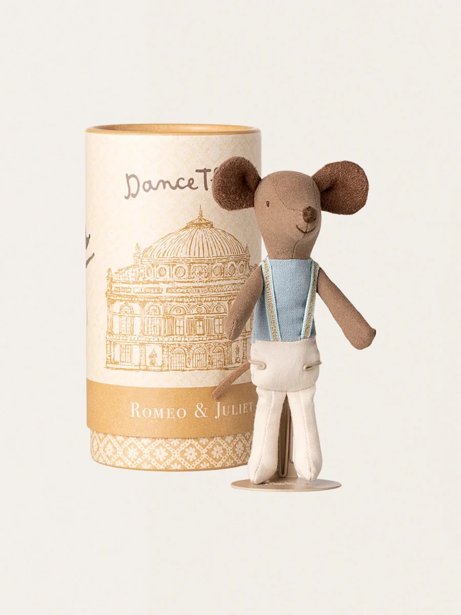 Myszka baletnica Big Brother Romeo od Maileg to niecodzienna wersja klasycznej baletnicy Maileg – elegancki tancerz w pełnym stroju scenicznym, gotowy na występ w miniaturowym teatrze marzeń. Ubrany w dopracowany kostium, z elastycznym metalowym szkieletem i uroczymi detalami, staje się nie tylko zabawką, ale małą figurką artystyczną.