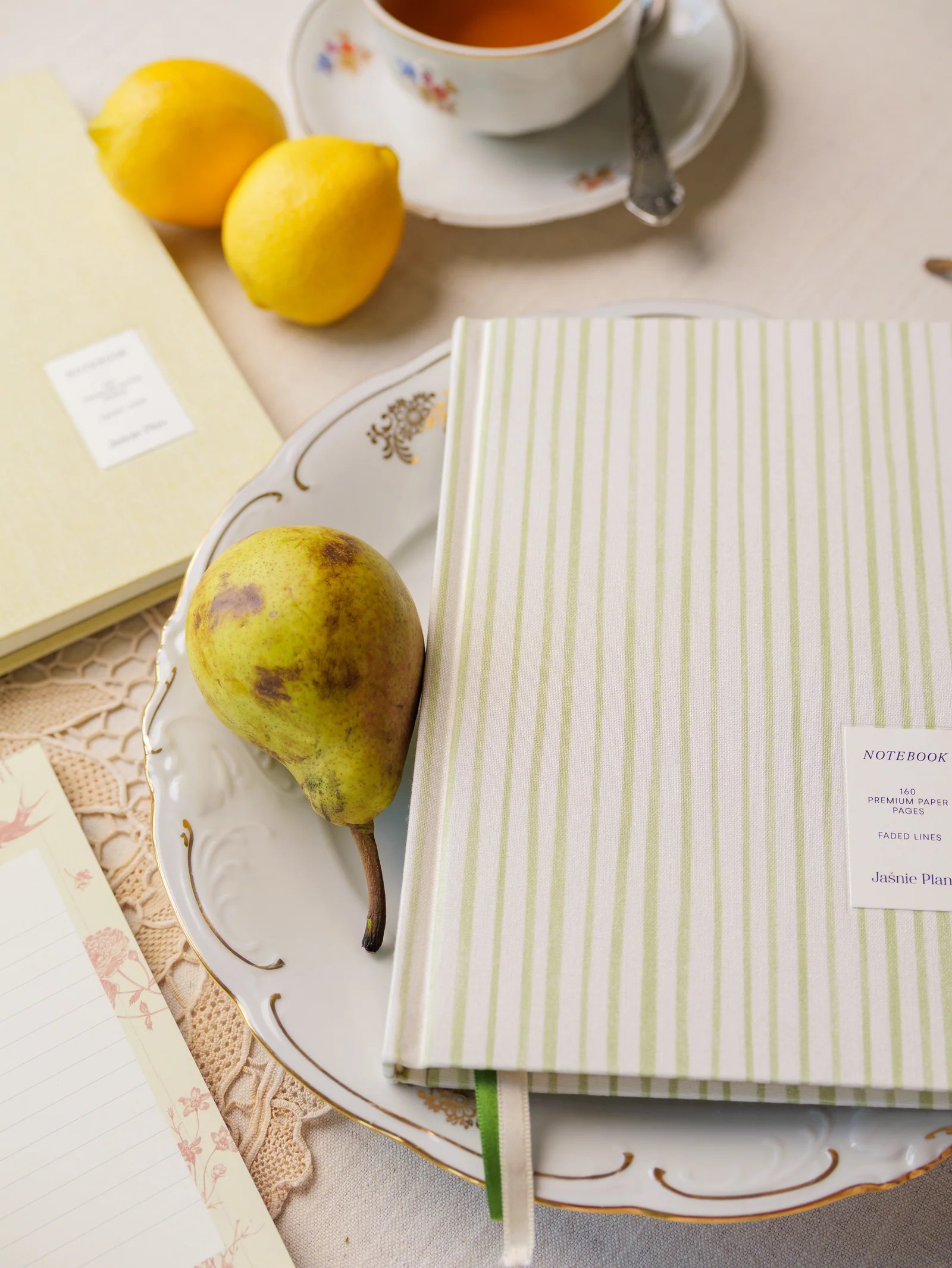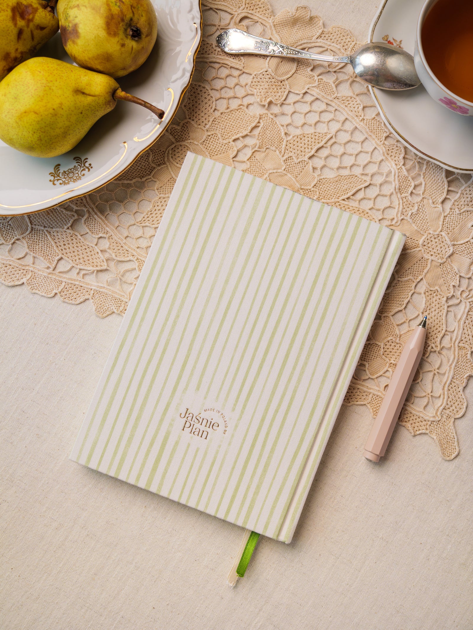 • Materiałowa okładka w delikatny, pasiasty wzór – elegancka i miękka