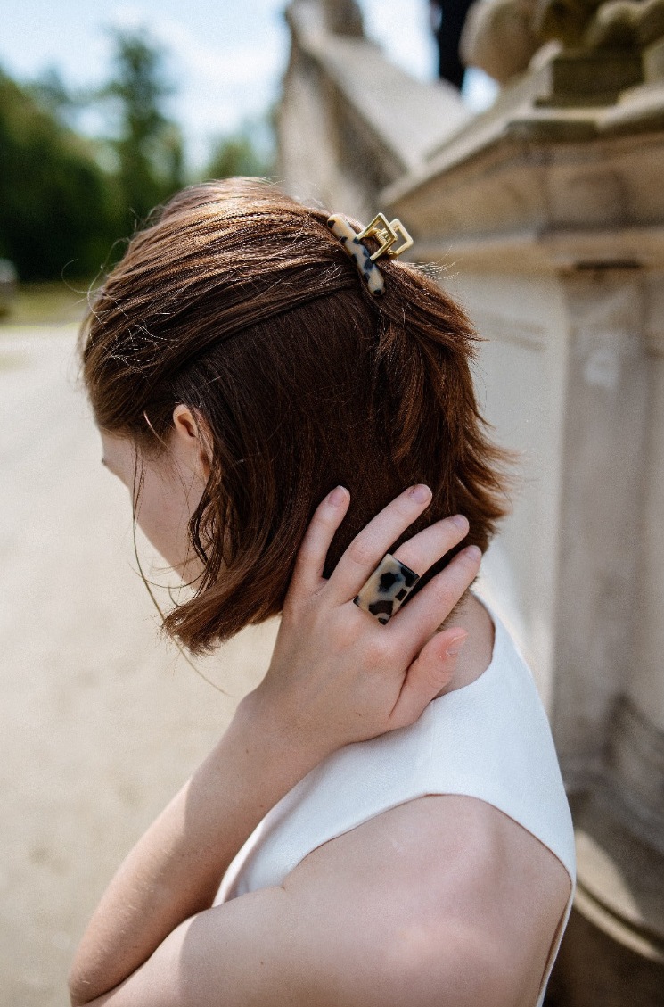 Wykonana z włoskiego octanu celulozy i metalu, jest wygodna w noszeniu przez cały dzień. Materiał, z którego powstała, jest w 100% zrównoważony i hipoalergiczny — to świetna alternatywa dla biżuterii z plastiku i materiałów pochodzenia zwierzęcego.