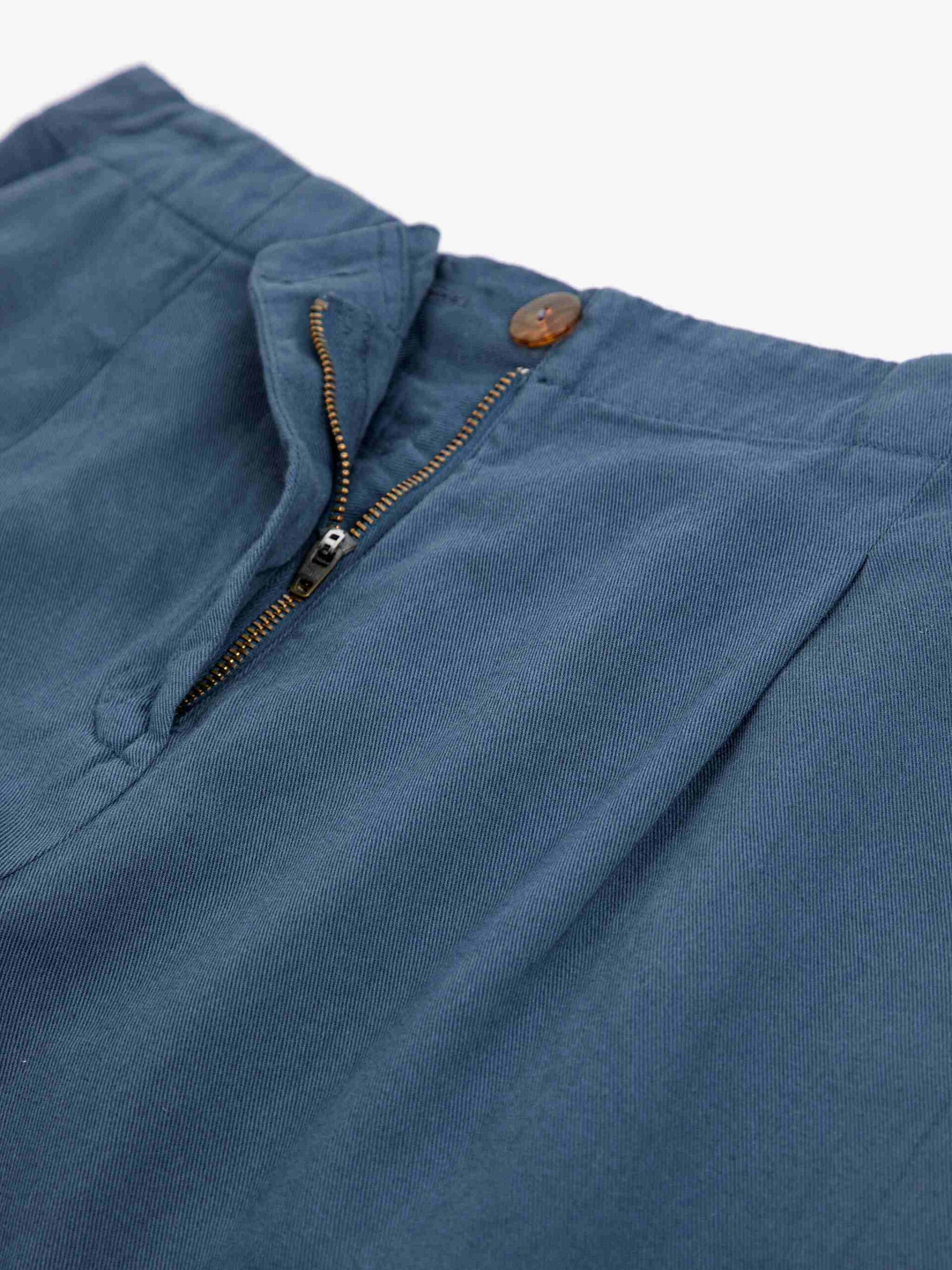 Uszyte z tkaniny o średniej gramaturze — 100% bawełnianej gabardyny — spodnie są trwałe, oddychające i przyjemne w noszeniu przez cały dzień. Prosta nogawka sprawia, że model jest uniwersalny i łatwy do stylizacji, zarówno w bardziej casualowych, jak i nieco elegantszych zestawieniach.
