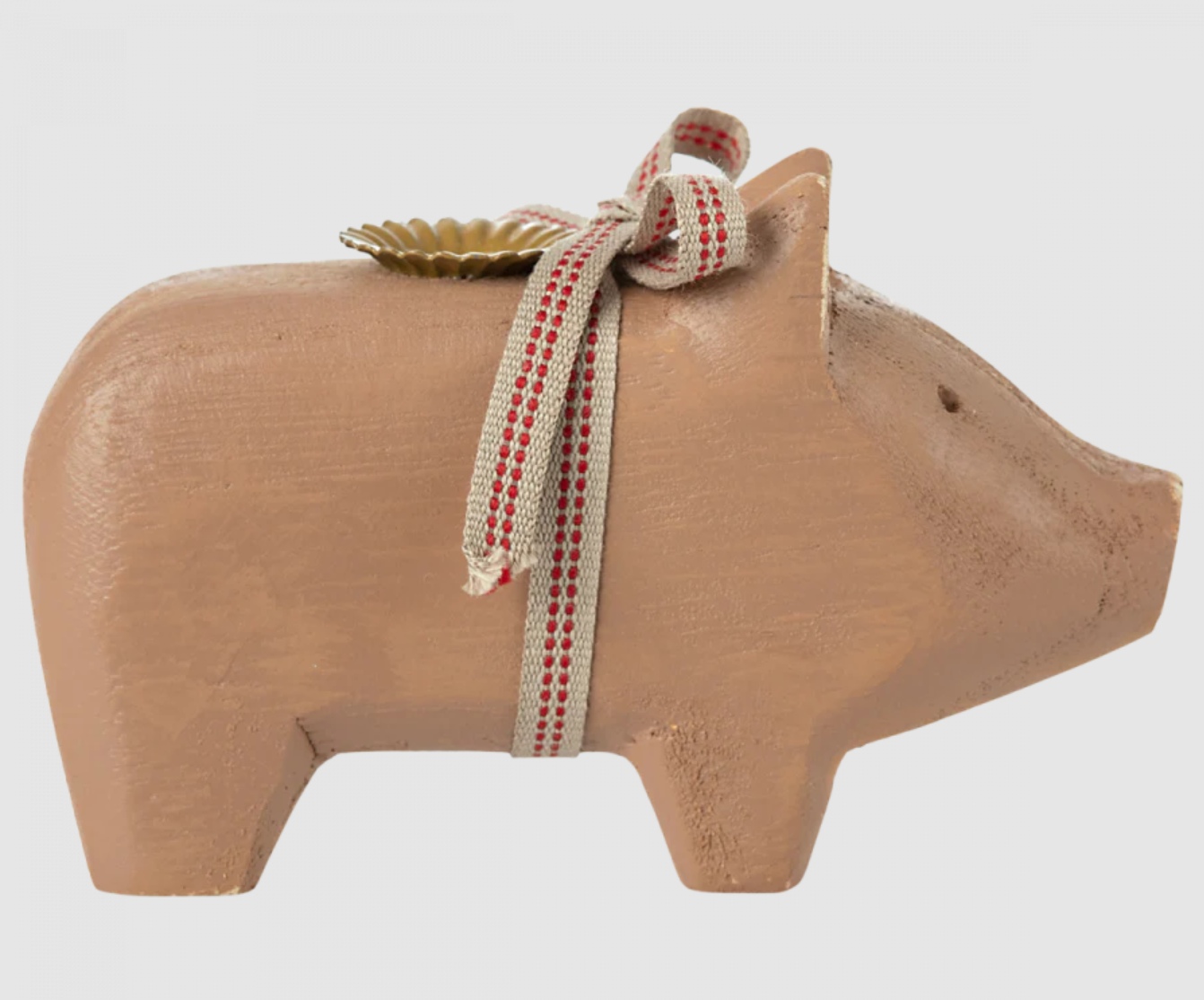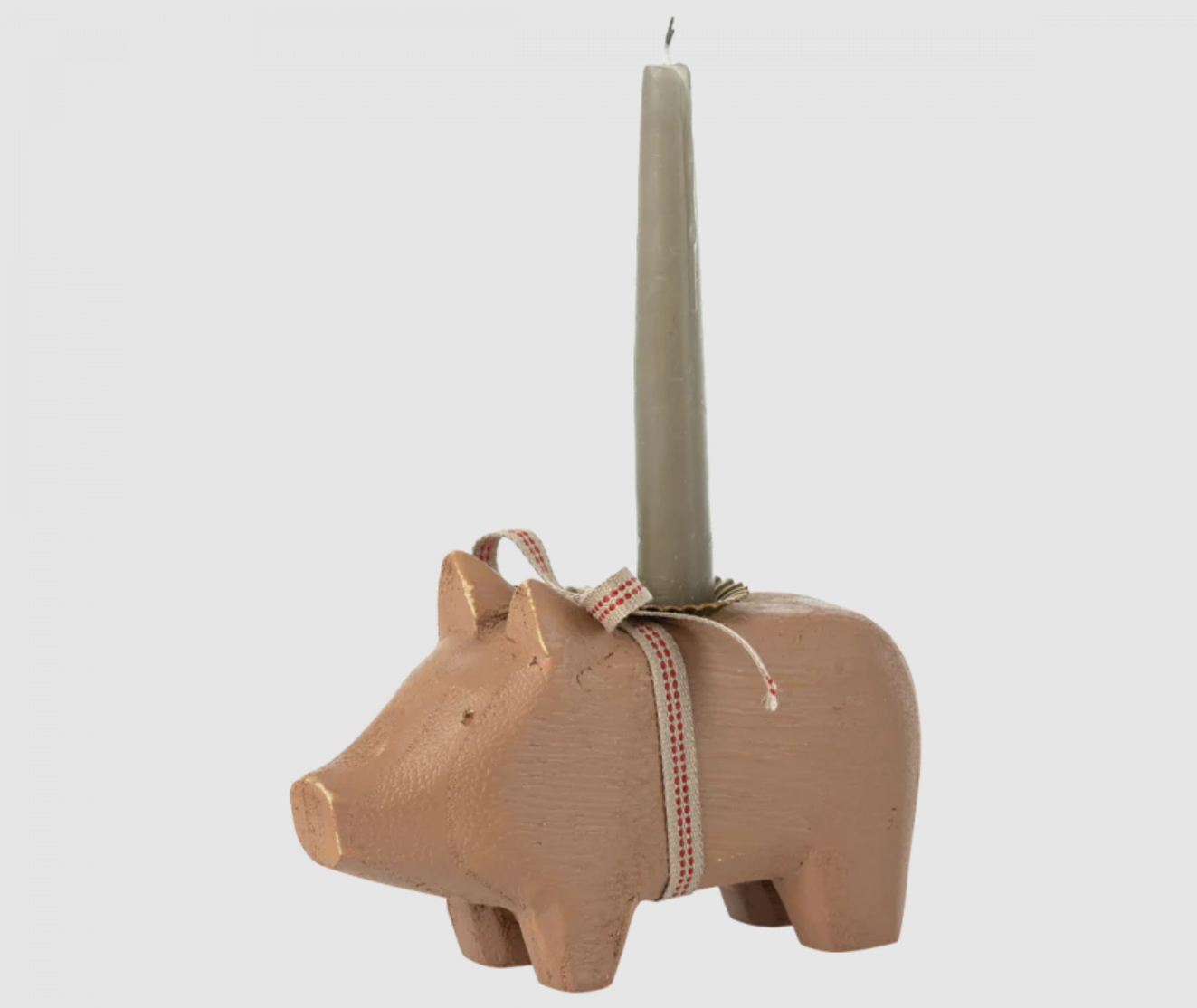 Czar świąt w stylu retro. Uroczy świecznik w kształcie świnki z kokardką od duńskiej marki Maileg to piękny akcent na święta. Nawiązuje do tradycji, tworząc magiczną atmosferę i przywołując dziecięcą radość.