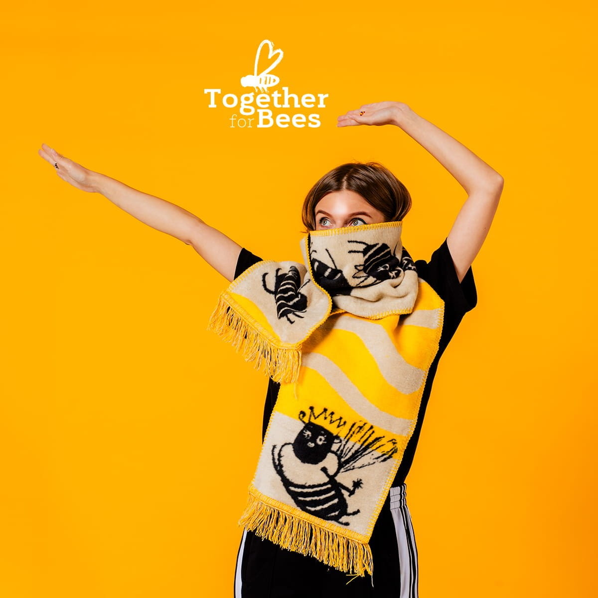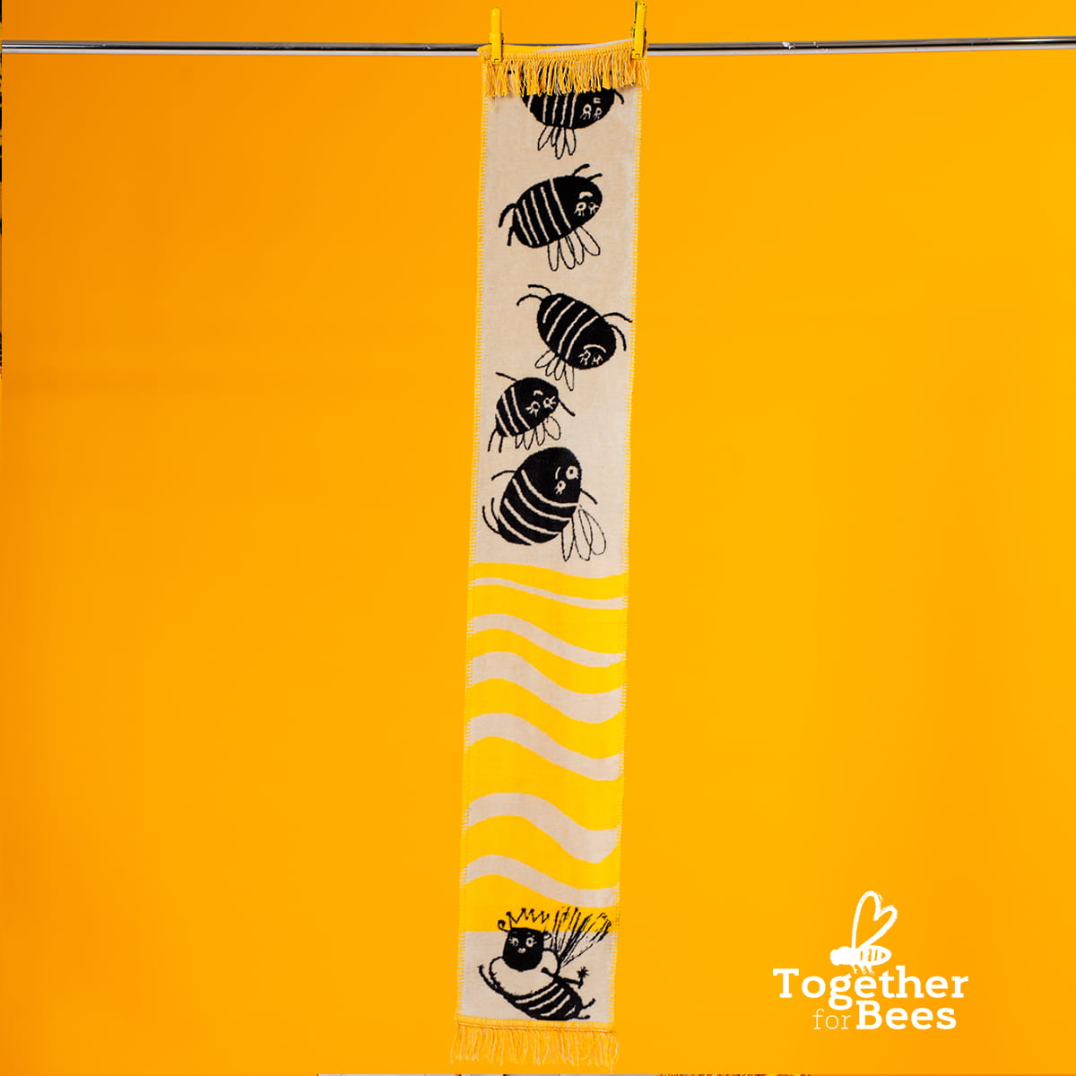 Duży, żakardowy szalik w wyjątkowej odsłonie od polskiej marki Szmat Skład. Intensywne kolory, graficzny wzór i miękka bawełniana tkanina tworzą zimowy dodatek z charakterem. Projekt powstał w ramach inicjatywy „Together for bees” – kampanii wspierającej ochronę pszczół, zainicjowanej przez aktywistkę Dianę Dybę.