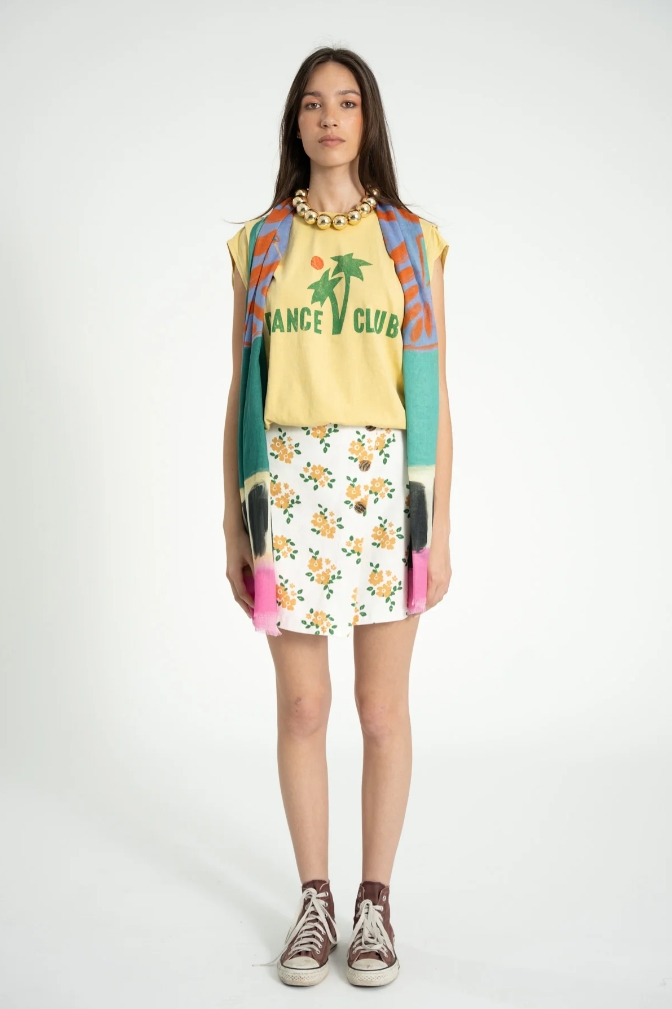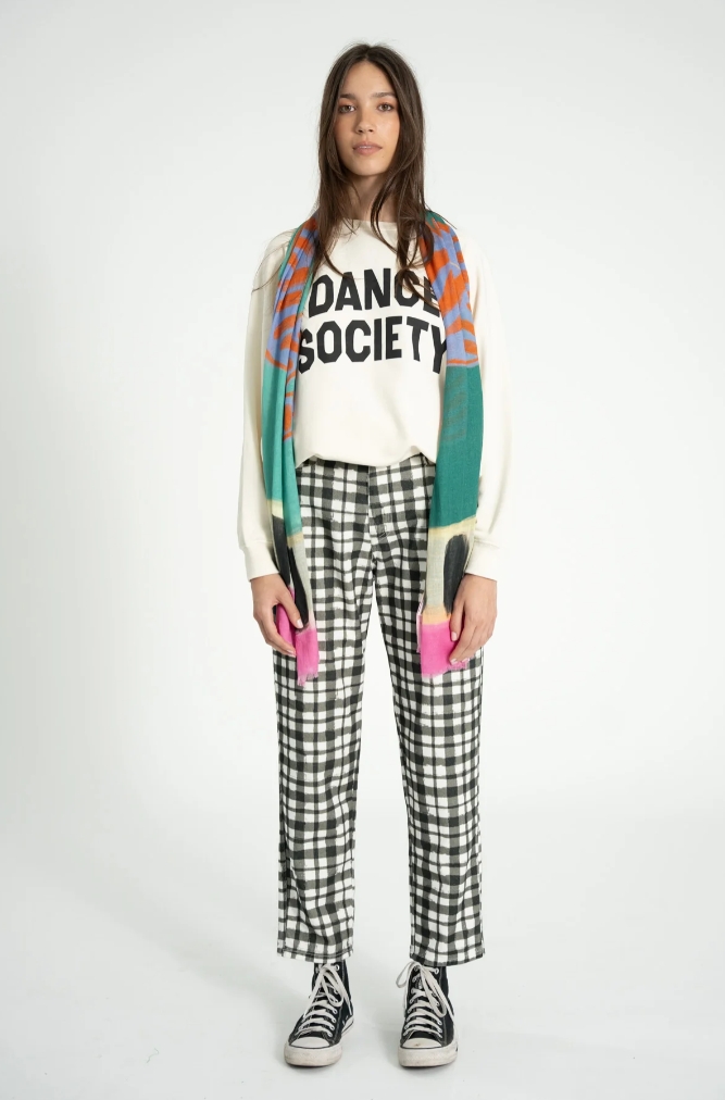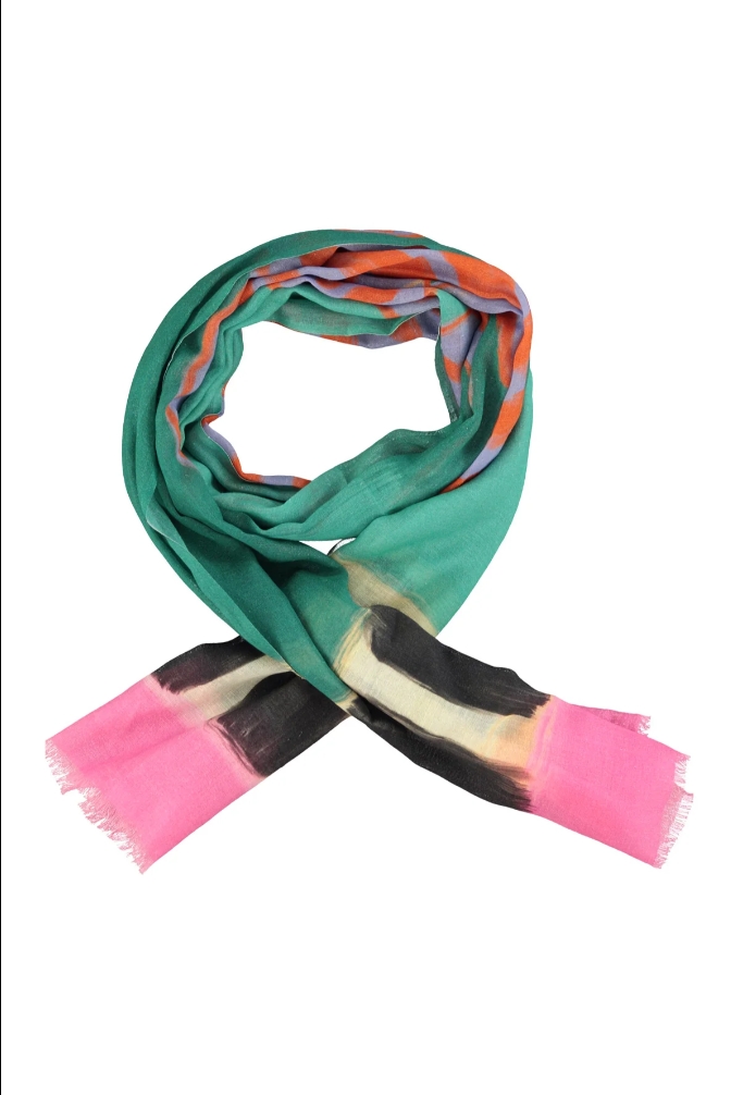 Wyrazisty, artystyczny akcent, który odmieni nawet najprostszą stylizację. Kolorowy szalik portugalskiej marki Sisters Department został wykonany z lekkiej, cienkiej tkaniny, dzięki czemu miękko układa się na sylwetce i sprawdza się przez większą część roku.