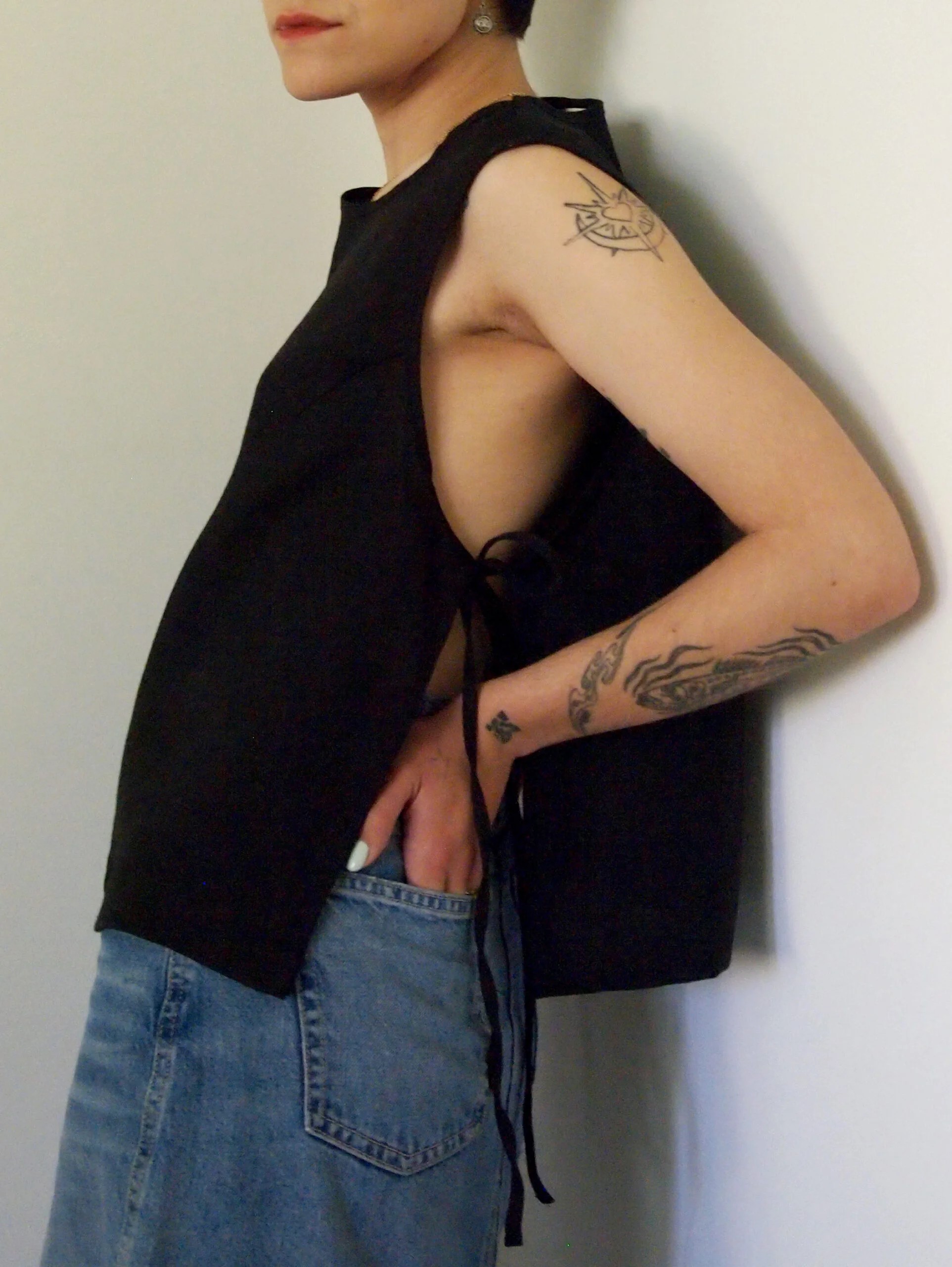 Top z wiązaniem po bokach czarny od polskiej marki Łyko. Charakteryzuje się prostym i klasycznym fasonem. Top uszyta jest w 100% z lnu zmiękczonego metodą stonewashed.  Połączenie wygodnego kroju i oddychającej tkaniny sprawi, że będziesz je nosić cały rok. Posłuży ci dłużej, niż koszulka z bawełny, dzięki niezwykłym właściwościom lnu.
