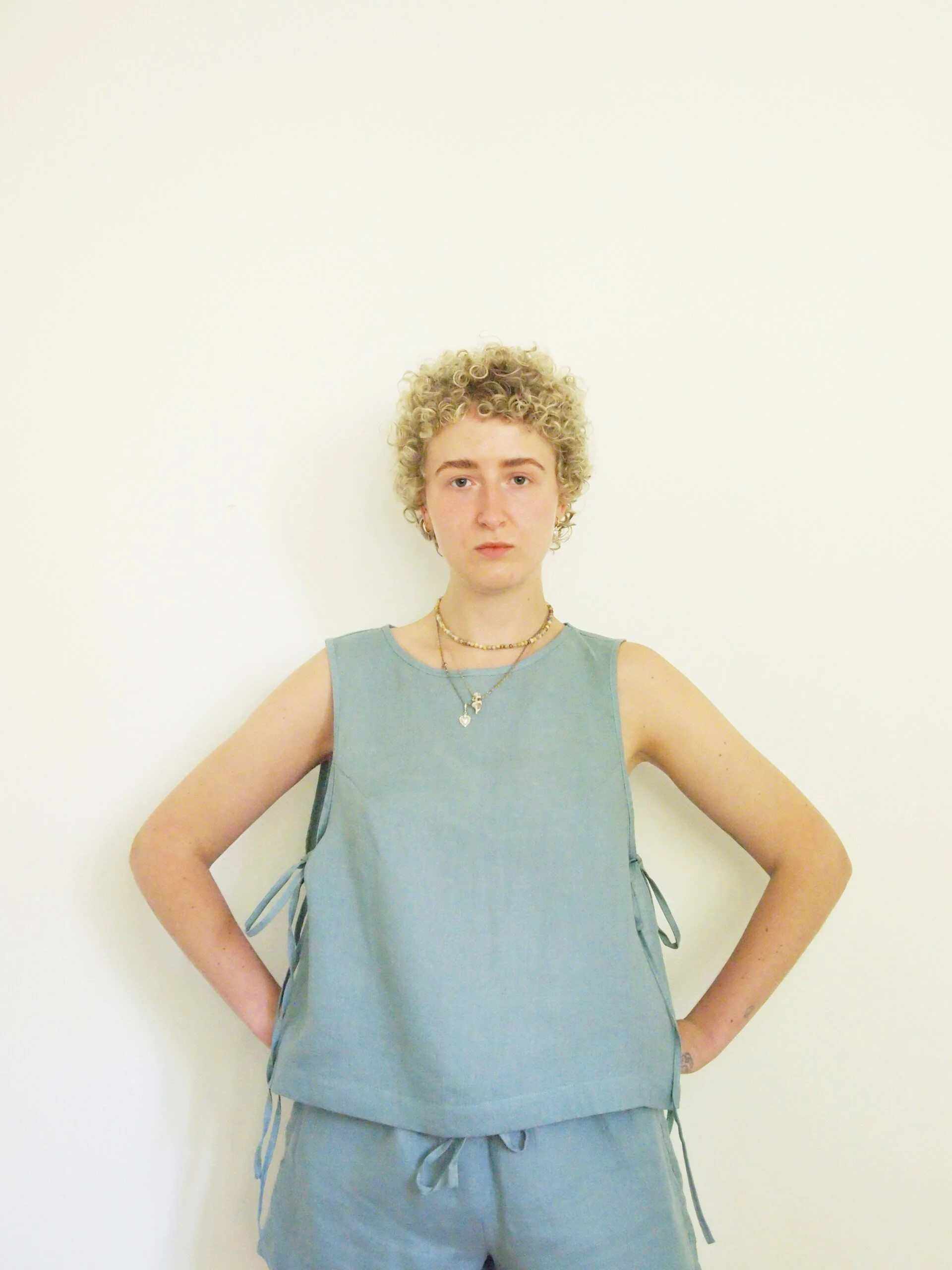 Top z wiązaniem po bokach morski od polskiej marki Łyko. Charakteryzuje się prostym i klasycznym fasonem. Top uszyta jest w 100% z lnu zmiękczonego metodą stonewashed.  Połączenie wygodnego kroju i oddychającej tkaniny sprawi, że będziesz je nosić cały rok. Posłuży ci dłużej, niż koszulka z bawełny, dzięki niezwykłym właściwościom lnu.