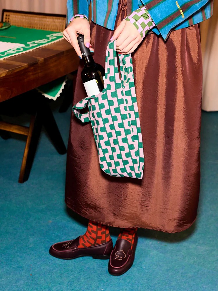 Kolorowa torebka na butelkę od Bobo Choses to praktyczny dodatek, który wyróżnia się lekkością i oryginalnym printem. Ciemnozielona baza i zabawny wzór sprawiają, że nawet tak prosty przedmiot może dodać stylu codziennym rytuałom. Idealna do przenoszenia ulubionej butelki z wodą czy herbatą — miękka, wygodna i zaprojektowana z dbałością o każdy detal.