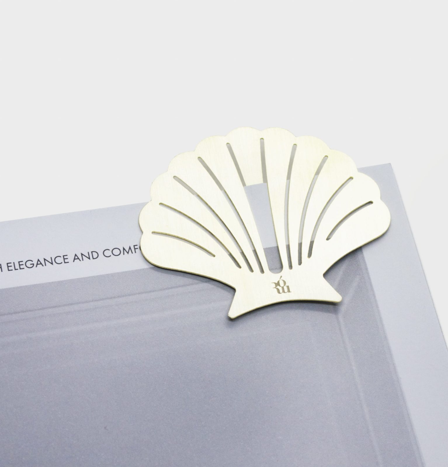 Zakładka do książki Seashell jest wykonana ze szczotkowanego mosiądzu, funkcjonalna i minimalistyczna. Zakładka nasunięta na stronę lub włożona między kartki przywołuje ducha pełnych słońca spacerów brzegiem morza. Ze względu na charakter materiału, z biegiem czasu, Seashell ciemnieje i nabiera swego indywidualnego charakteru. Do celów pielęgnacyjnych można stosować preparaty do czyszczenia biżuterii. Mosiężna, elegancka zakładka do książki w kształcie złotej rybki. Zapakowana w elegancką, czarną kopertę.